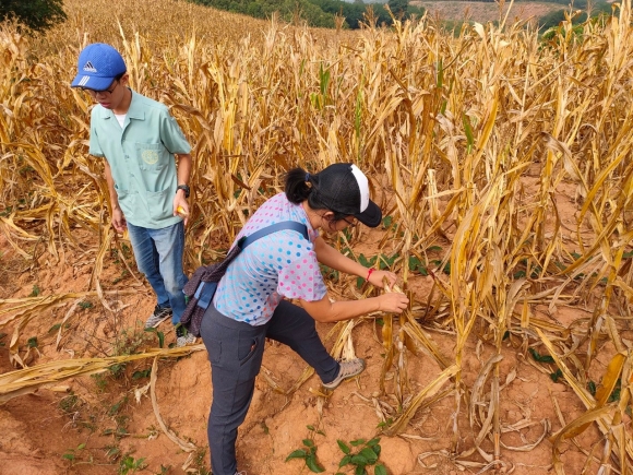วันที่ 8 พฤศจิกายน 2562 นางมนัสนันท์ กาละดี เกษตรอำเภอนาน้อย มอบหมายให้นางสาววัชราภรณ์ มะโนคำ นักวิชาการส่งเสริมการเกษตร พร้อมกับเจ้าหน้าที่สำนักงานเกษตรอำเภอนาน้อย ออกพื้นที่สำรวจแปลงข้าวโพดที่เสียหายจากภัยแล้งและฝนทิ้งช่วง เพื่อพิจารณาเกณฑ์การตรวจ ร่วมกับคณะอนุกรรมการให้ความช่วยเหลือผู้ประสบภัยพิบัติด้านพืช ระดับหมู่บ้าน ในพื้นที่บ้านพืชเจริญ หมู่ที่ 1 ตำบลน้ำตก อำเภอนาน้อย จังหวัดน่าน
