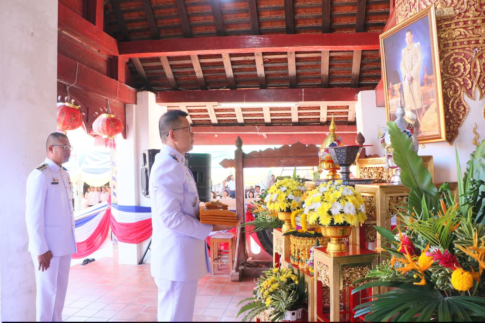 นายศักดิ์สิทธิ์ ศรีวิชัย เกษตรจังหวัดน่าน มอบหมายให้เจ้าหน้าที่กลุ่มยุทธศาสตร์และสารสนเทศ เข้าร่วมพิธีถวายผ้าพระกฐินพระราชทาน ประจำปีพุทธศักราช 2568 ซึ่งพระบาทสมเด็จพระเจ้าอยู่หัว ทรงพระกรุณาโปรดเกล้าฯ พระราชทานผ้าพระกฐิน ถวายแด่พระสงฆ์จำพรรษากาลถ้วนไตรมาส เพื่อความเป็นสิริมงคล เป็นพุทธบูชา และเพื่อร่วมถวายพระราชกุศล แด่พระบาทสมเด็จพระเจ้าอยู่หัว ณ วัดบุญยืน พระอารามหลวง อำเภอเวียงสา จังหวัดน่าน