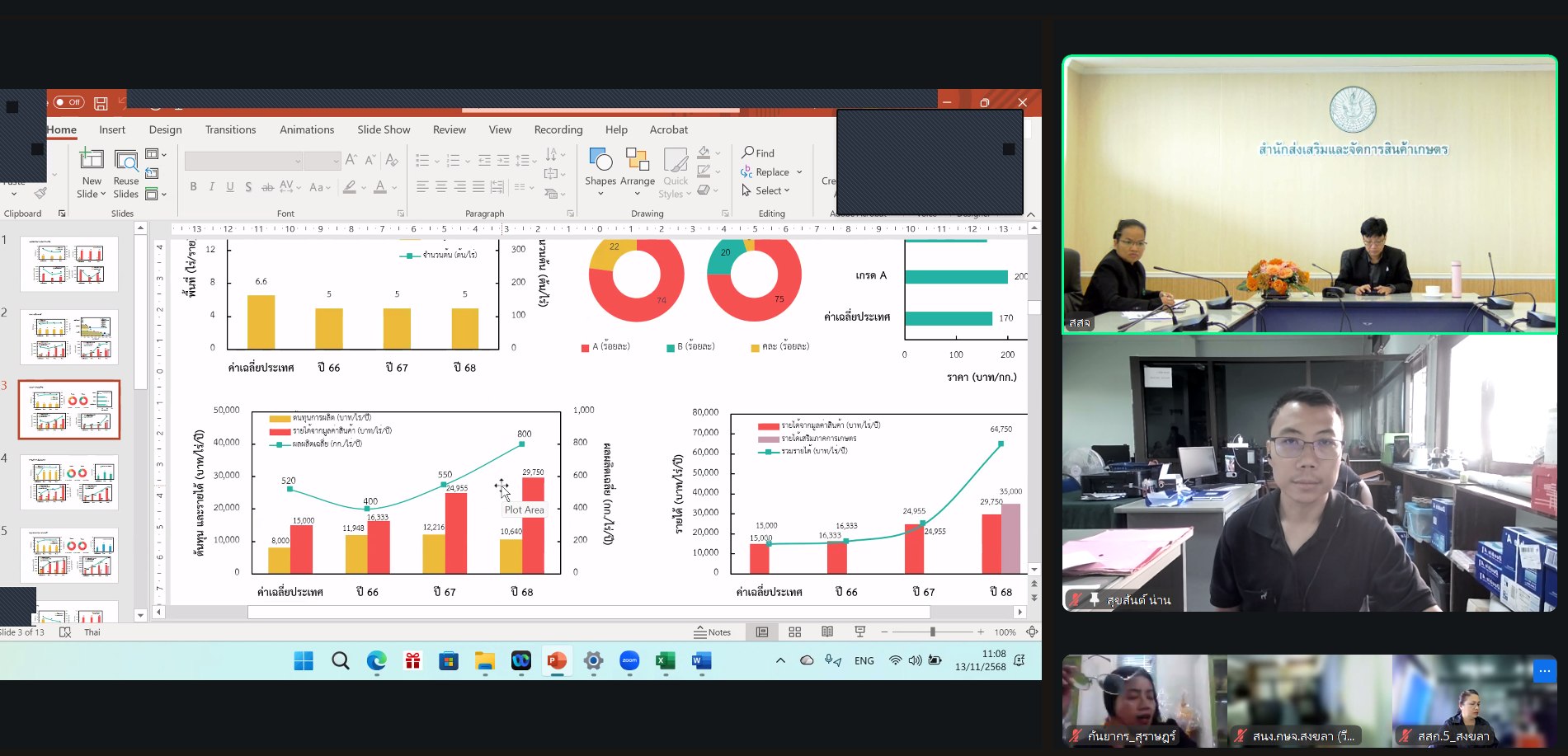 นายศักดิ์สิทธิ์ ศรีวิชัย เกษตรจังหวัดน่าน มอบหมายให้ นายจักรพันธ์ อินไสย หัวหน้ากลุ่มส่งเสริมและพัฒนาการผลิต และนายสุขสันต์ วงค์กุนะ นักวิชาการส่งเสริมการเกษตรชำนาญการ กลุ่มส่งเสริมและพัฒนาการผลิต ร่วมประชุมหารือแนวทางการดำเนินกิจกรรมโครงการสินค้าเกษตรและบริการมูลค่าสูง 1 ท้องถิ่น 1 สินค้าเกษตรมูลค่าสูง ปี 2569 ไม้ยืนต้น โดยมี นางสาวศันสนีย์ นิติธรรมยง ผู้อำนวยการกลุ่มส่งเสริมไม้ยืนต้น เป็นประธาน ผ่านระบบ Zoom Meeting