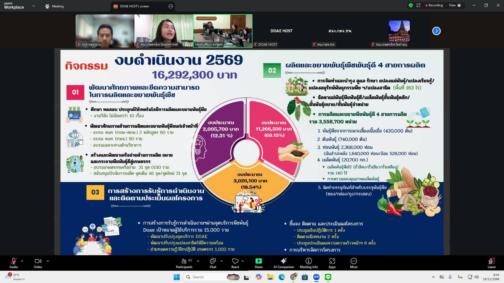 นายศักดิ์สิทธิ์ ศรีวิชัย เกษตรจังหวัดน่าน มอบหมายให้ นายสุขสันต์ วงค์กุนะ นักวิชาการส่งเสริมการเกษตรชำนาญการ กลุ่มส่งเสริมและพัฒนาการผลิต และนายพีรพงษ์ ทิพวิไชย นักวิชาการส่งเสริมการเกษตรปฏิบัติการ กลุ่มยุทธศาสตร์และสารสนเทศ เข้าร่วมประชุมชี้แจงการจัดสรรงบประมาณโครงการผลิตและขยายพืชพันธุ์ดีเพื่อเพิ่มประสิทธิภาพการผลิต และยกระดับความมั่นคงด้านอาหาร ครั้งที่ 1/2569 ผ่านระบบประชุมออนไลน์ Zoom Meeting