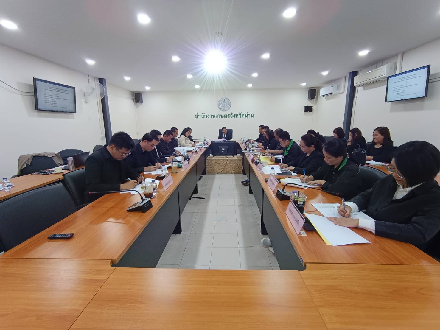 นายศักดิ์สิทธิ์ ศรีวิชัย เกษตรจังหวัดน่าน เป็นประธานการประชุมเกษตรอำเภอประจำเดือนพฤศจิกายน ครั้งที่ 11/2568 โดยมีหัวหน้ากลุ่ม/ฝ่าย และเกษตรอำเภอทุกอำเภอ เข้าร่วมประชุมเพื่อรายงานและติดตามความคืบหน้าการดำเนินงานโครงการส่งเสริมการเกษตร ในห้วงเดือนที่ผ่านมา พร้อมทั้งชี้แจงข้อราชการ และหารือแผนการปฏิบัติงานของกลุ่ม/ฝ่าย สำนักงานเกษตรจังหวัดน่าน และสำนักงานเกษตรอำเภอ ในห้วงต่อไป ณ ห้องประชุมเทพชัยมงคล สำนักงานเกษตรจังหวัดน่าน ตำบลในเวียง อำเภอเมืองน่าน จังหวัดน่าน