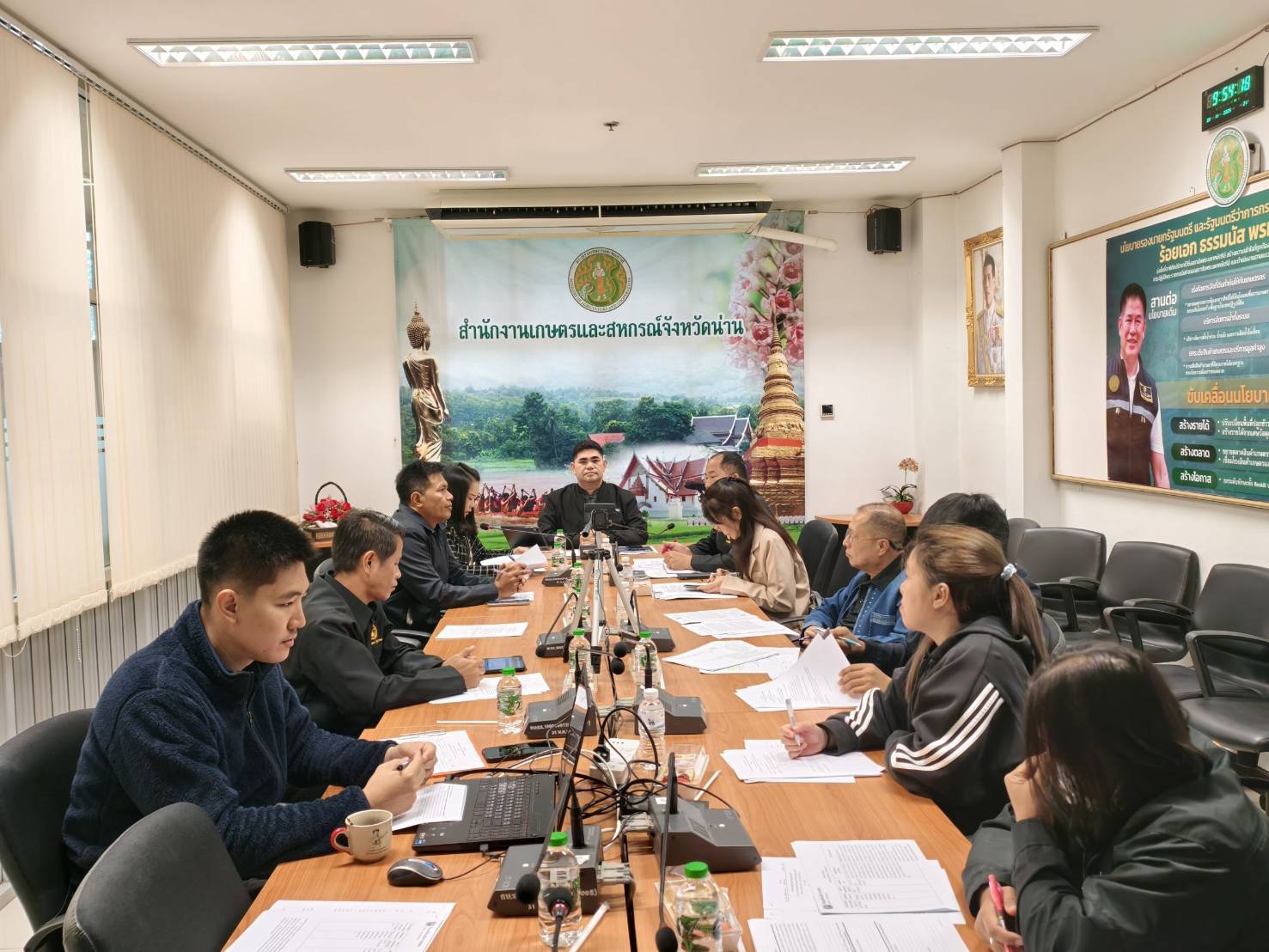 นายศักดิ์สิทธิ์ ศรีวิชัย เกษตรจังหวัดน่าน มอบหมายนางสาวศิริกาญจน์ เพียรดีกุล นักวิชาการส่งเสริมการเกษตรชำนาญการ เข้าร่วมประชุมคณะกรรมการศูนย์ติดตามและแก้ไขปัญหาภัยพิบัติด้านการเกษตรจังหวัดน่าน ครั้งที่ 9/2568 ณ ห้องประชุมเกษตรและสหกรณ์จังหวัด ชั้น 4 ศาลากลางจังหวัดน่าน เพื่อซักซ้อมการดำเนินงานของศูนย์ติดตามฯ ในช่วงฤดูแล้ง ปี 2568/69 (พฤศจิกายน 2568 - เมษายน 2569) และมาตรการบริหารจัดการป้องกันและแก้ไขปัญหาฝุ่นละอองขนาดเล็กฯ (PM2.5) ภาคการเกษตร (ฉบับที่ 2) โดยมีนายกฤษณ อำพันธุ์ เกษตรและสหกรณ์จังหวัดน่านเป็นประธานการประชุม