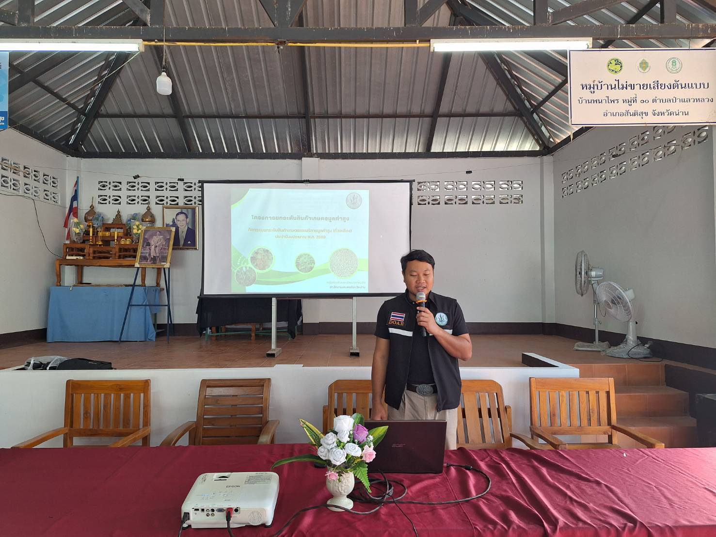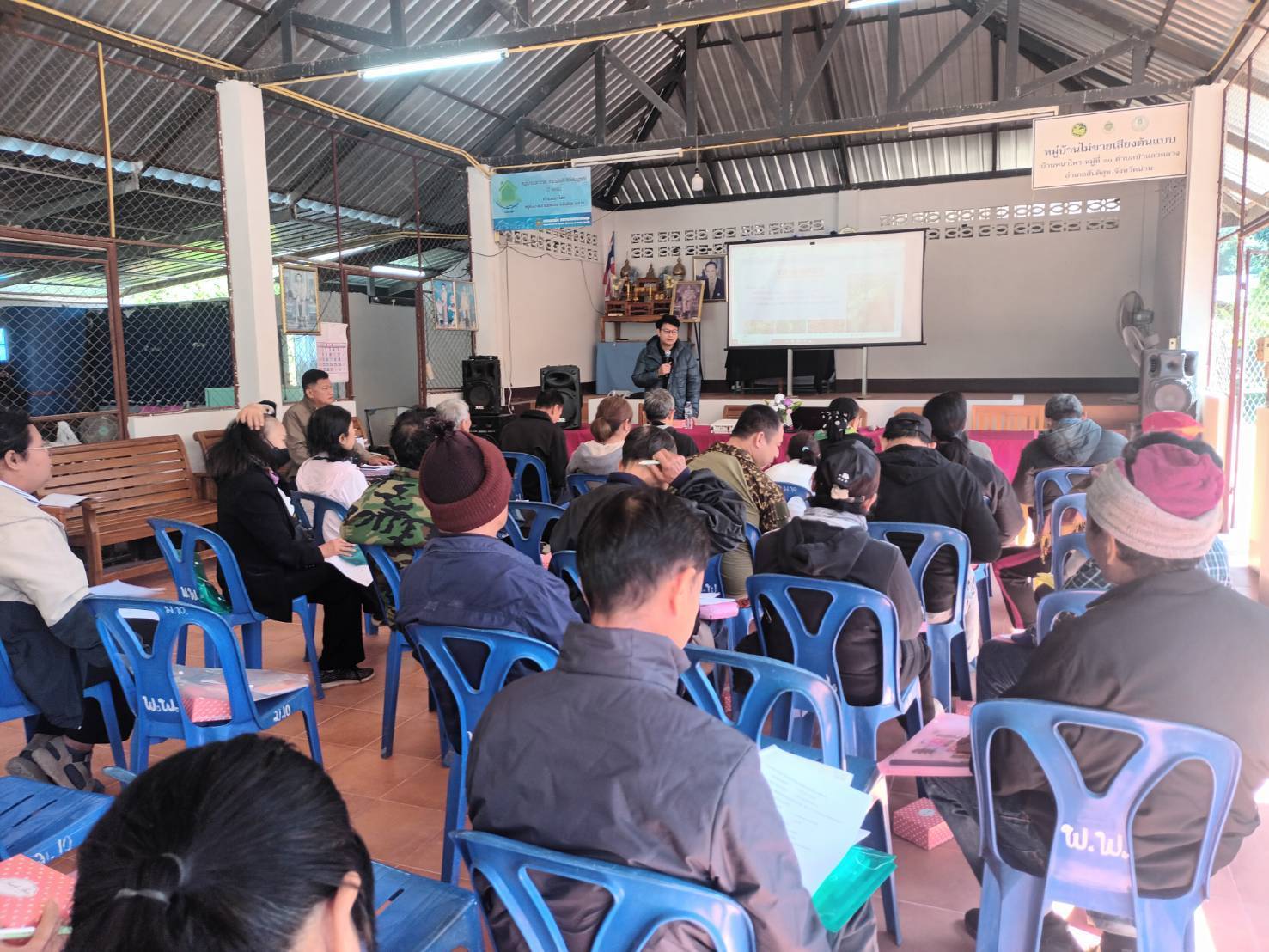 นายศักดิ์สิทธิ์ ศรีวิชัย เกษตรจังหวัดน่าน มอบหมายให้เจ้าหน้าที่ส่งเสริมการเกษตร กลุ่มส่งเสริมและพัฒนาการผลิต สำนักงานเกษตรจังหวัดน่าน ร่วมกับสำนักงานเกษตรอำเภอสันติสุข ดำเนินการอบรมถ่ายทอดความรู้เกษตรกร หลักสูตร เทคโนโลยีการผลิตเมล็ดพันธุ์ถั่วเหลืองที่เหมาะสม โครงการยกระดับสินค้าเกษตรมูลค่าสูง กิจกรรมยกระดับสินค้าเกษตรมูลค่าสูง (ถั่วเหลือง) ปีงบประมาณ พ.ศ. 2569 เกษตรกรเป้าหมาย จำนวน 40 ราย ณ หอประชุมบ้านพนาไพร หมู่ที่ 10 ตำบลป่าแลวหลวง อำเภอสันติสุข จังหวัดน่าน