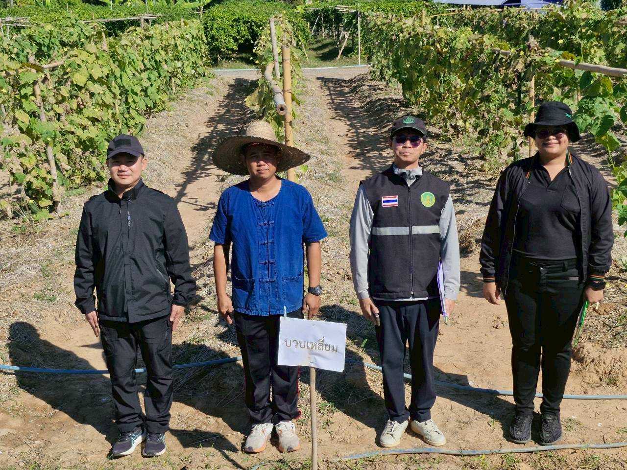นายศักดิ์สิทธิ์ ศรีวิชัย เกษตรจังหวัดน่าน มอบหมายให้นางจีรพร ชัยเงิน หัวหน้ากลุ่มอารักขาพืช พร้อมด้วยเจ้าหน้าที่กลุ่มอารักขาพืช ติดตามการก่อสร้างฐานการเรียนรู้ต้นแบบการผลิตสารชีวภัณฑ์ซึ่งปัจจุบันมีความคืบหน้าการก่อสร้างร้อยละ 70 จากนั้นเยี่ยมเยียนการเพาะกิจกรรมการเพาะปลูกในช่วงเดือนธันวาคม โดยได้สำรวจโรคและแมลงในแปลงผลิตเมล็ดพันธุ์ฟักแฟงและบวบเหลี่ยม ซึ่งพบการระบาดของโรคราน้ำค้างในระดับเศรษฐกิจกระจายทั่วทั้งแปลง จึงแนะนำให้ใช้สารเคมีป้องกันและกำจัดเชื้อรา(แมนโคเซบ) พ่นเพื่อควบคุมการระบาด ณ โครงการทหารพันธุ์ดี ฐานแสงเพ็ญ ตำบลฝายแก้ว อำเภอภูเพียง จังหวัดน่าน