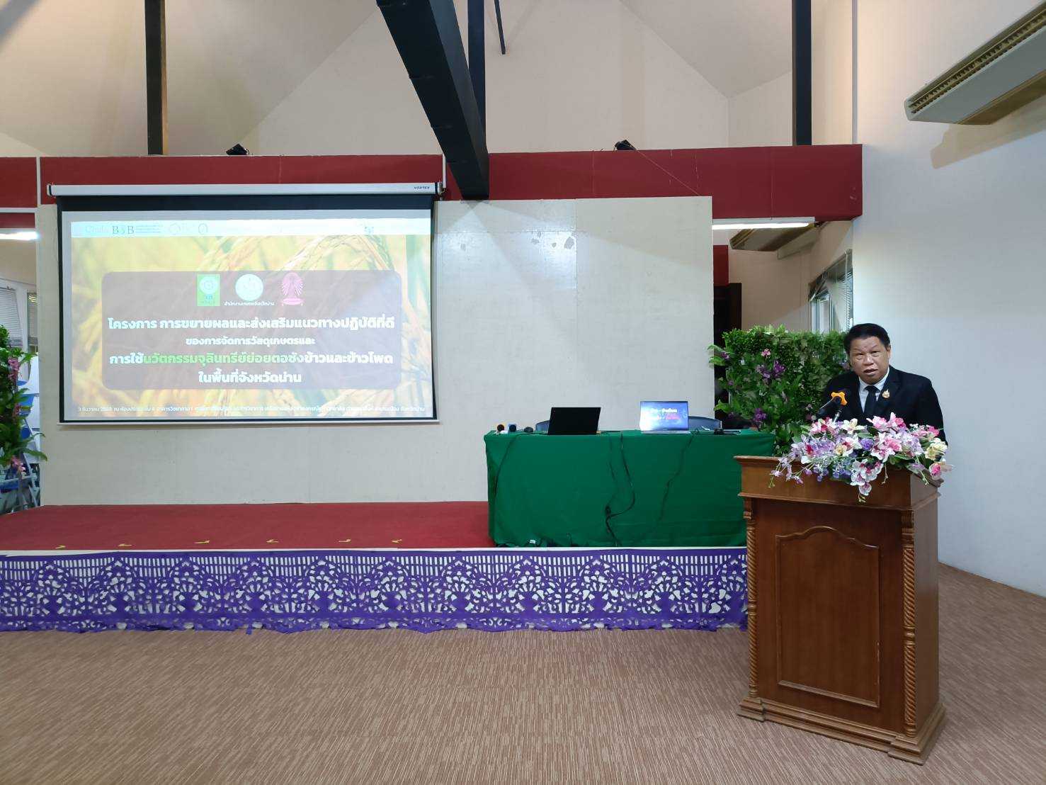 นายศักดิ์สิทธิ์ ศรีวิชัย เกษตรจังหวัดน่าน เป็นประธานเปิดโครงการขยายผลและการฝึกอบรมเชิงปฏิบัติการแก่เกษตรกร บุคลากรการเกษตร เจ้าหน้าที่หน่วยงานของรัฐ ผู้ประกอบการ เรื่อง การขยายผลและส่งเสริมแนวทางปฏิบัติที่ดีของการจัดการวัสดุเกษตรและการใช้นวัตกรรมจุลินทรีย์ย่อยตอซังข้าวและข้าวโพดในพื้นที่จังหวัดน่าน พร้อมกับมอบหมายให้นางสาวณัฐฐิกา เสวกะ นักวิชาการส่งเสริมการเกษตรชำนาญการ กลุ่มอารักขาพืช สำนักงานเกษตรจังหวัดน่าน เข้าร่วมกิจกรรมดังกล่าว ณ ห้องประชุมใหญ่ ชั้น 4 อาคารวิชชาคาม 1 ศูนย์การเรียนรู้และบริการวิชาการเครือข่ายแห่งจุฬาลงกรณ์มหาวิทยาลัย ตำบลผาสิงห์ อำเภอเมืองน่าน จังหวัดน่าน