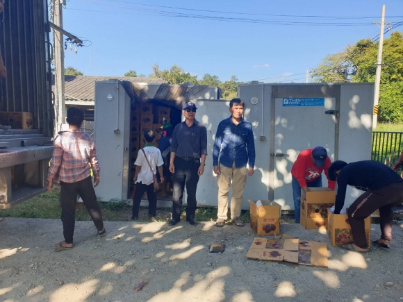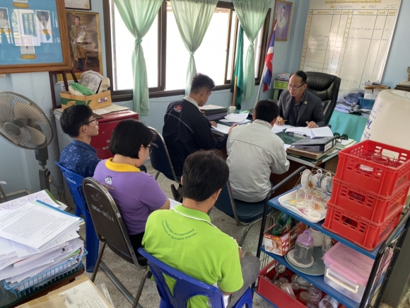 นายสุขพสันต์ พรหมลังกา เกษตรอำเภอเฉลิมพระเกียรติ ประชุมเจ้าหน้าที่สำนักงานเกษตรอำเภอเฉลิมพระเกียรติ และติดตามให้คำแนะนำเกษตรกรในการขนส่งหม่อนผลสด เพื่อเก็บรักษาในห้องเย็น