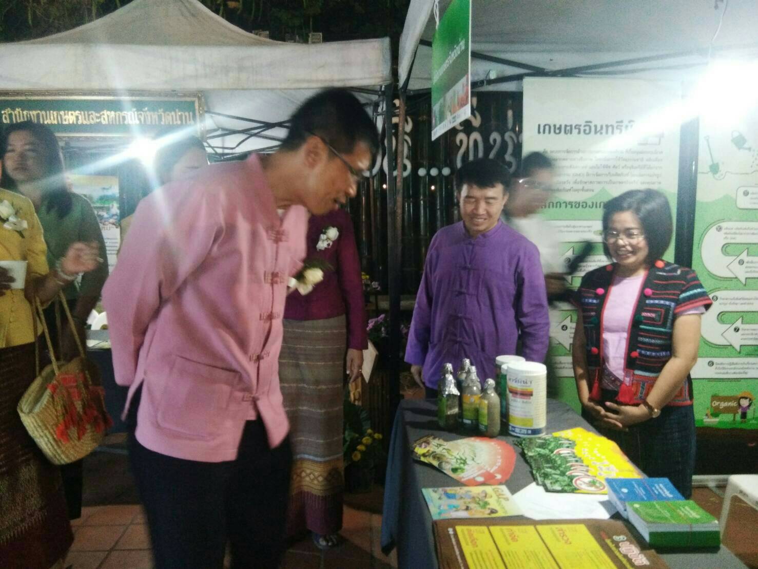 วันที่ 20 ธันวาคม 2562 นายประดิษฐ์ ธนะขว้าง รักษาการเกษตรจังหวัดน่าน นางอุมาพร ดีพรมกุล เกษตรอำเภอบ้านหลวง รักษาการหัวหน้ากลุ่มอารักขาพืช และเจ้าหน้าที่ ร่วมเป็นเกียรติและร่วมจัดนิทรรศการงาน เดินตามรอยพ่อ มหกรรมสินค้าเกษตรอินทรีย์วิถีน่าน จากภูผาสู่สากล ครั้งที่ 4 ระหว่างวันที่ 20-22 ธันวาคม 2562 ณ ลานข่วงเมืองน่าน อำเภอเมืองน่าน จังหวัดน่าน