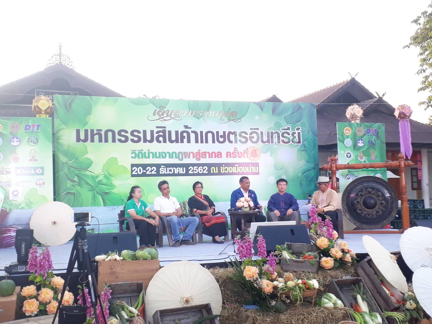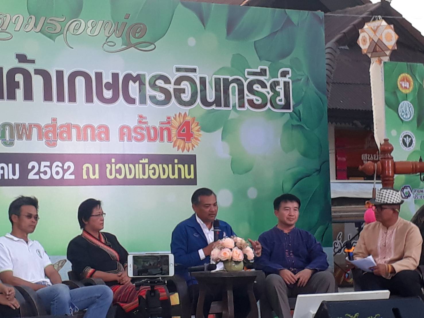 วันที่ 22 ธันวาคม 2562 นายประดิษฐ์ ธนะขว้าง รักษาการเกษตรจังหวัดน่าน ร่วมเสวนาเกษตรอินทรีย์ ในงานเดินตามรอยพ่อ มหกรรมสินค้าเกษตรอินทรีย์วิถีน่าน จากภูผาสู่สากล ครั้งที่ 4 ระหว่างวันที่ 20-22 ธันวาคม 2562 ณ ลานข่วงเมืองน่าน อำเภอเมืองน่าน จังหวัดน่าน