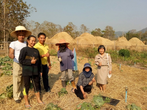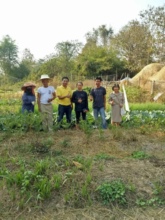 ณ ศพก.เครือข่ายฯ และติดตามการดำเนินกิจกรรมของสมาชิกกลุ่ม แนะนำการใช้ปุ๋ยอินทรีย์ น้ำหมักชีวภาพ สมุนไพรขับไล่แมลงในแปลงปลูกผักของสมาชิก