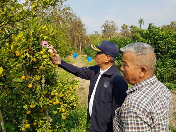 วันที่ 18 มกราคม 2563 นายเศรณี อนิลบล เกษตรจังหวัดน่าน พร้อมหัวหน้ากลุ่ม/ฝ่าย สำนักงานเกษตรจังหวัดน่าน และเกษตรอำเภอบ้านหลวง เยี่ยมเยือนให้กำลังใจ นายพงศ์สนิท ใหม่ธิมา เกษตรกรบ้านป่าคา ตำบลป่าคาหลวง อำเภอบ้านหลวง ที่ผลิตส้มปลอดภัยซึ่งได้รับรางวัลที่ 1 ในการประกวดส้มสีทอง ในงานเกษตรน่านแฟร์ ครั้งที่ 3 ประจำปี 2563 เมื่อวันที่ 11 มกราคม 2563 ที่ผ่านมา ซึ่งเกษตรจังหวัดน่านได้แนะนำการผลิตส้มเขียวหวานคุณภาพ โดยการสนับสนุน ส่งเสริม ให้มีการตัดแต่งกิ่งหลังการเก็บเกี่ยว มีการบริหารจัดการน้ำ การให้ปุ๋ยที่ถูกต้องเหมาะสมตามห้วงเวลา การป้องกันกำจัดโรคและแมลงศัตรูพืชด้วยวิธีที่ปลอดภัย ตลอดจนได้กำชับเจ้าหน้าที่ส่งเสริมการเกษตรในพื้นที่ ให้ส่งเสริมให้เกษตรกร เข้าร่วมโครงการยกระดับมาตรฐานการผลิตสินค้าเกษตร เพื่อให้มีการพัฒนาการผลิตสินค้าที่มีคุณภาพและได้มาตรฐานออกสู่ตลาดต่อไป และนายพงศ์สนิท ใหม่ธิมา เป็นเกษตรกรผู้เคยมีโอกาสเฝ้ารับเสด็จ พระบาทสมเด็จพระบรมชนกาธิเบศร มหาภูมิพลอดุลยเดชมหาราช บรมนาถบพิต เมื่อครั้งเสด็จมา ทรงงานในพื้นที่อำเภอบ้านหลวง เมื่อวันที่ 17 มกราคม 2518 ณ บริเวณสถานที่ตั้งสำนักงานเกษตรอำเภอบ้านหลวง ในปัจจุบันนี้