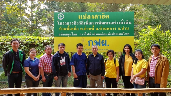 และเยี่ยมเยือนศูนย์เรียนรู้การเพิ่มประสิทธิภาพการผลิตสินค้าเกษตร(ศพก.)อำเภอบ้านหลวง จังหวัดน่าน มีนายธีรศักดิ์ วงศ์ตุ้ย เป็นประธานศูนย์ฯ มีกิจกรรมให้ความรู้การปลูกมะนาวในวงท่อ การผลิตยางพารา การเลี้ยงไก่ การทำปุ๋ยหมักปุ๋ยอินทรีย์และปุ๋ยน้ำชีวภาพ โดยเกษตรจังหวัดน่านได้ให้กำลังใจและให้แนวทางในการพัฒนาศูนย์ฯ โดยการส่งเสริมการผลิตและใช้ปุ๋ยอินทรีย์จากเศษพืชในพื้นที่เกษตร การบริหารจัดการน้ำโดยพัฒนาแหล่งน้ำในพื้นที่ อาทิการทำฝายชะลอน้ำ และการส่งเสริมการผลิตไม้ผลคุณภาพและมาตรฐาน ตลอดจนสาธิตการตัดแต่งกิ่งลองกอง มะม่วง และส้มโอ เพื่อให้ได้ผลผลิตที่มีคุณภาพ.