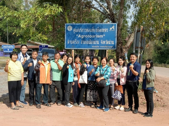วันที่ 23. มกราคม 2563. นายเศรณี อนิลบล เกษตรจังหวัดน่าน มอบหมายให้ นางสาวศิริกาญจน์ เพียรดีกุล นางสาวพัชราภัรณ์ บุญมา นวส. กลุ่มส่งเสริมและพัฒนาเกษตรกร และเจ้าหน้าที่สำนักงานเกษตรอำเภอเมืองน่าน/สำนักงานเกษตรอำเภอภูเพียง ร่วมต้อนรับ นางเทียมจันทร์. สุขเกษม ผู้อำนวยการกลุ่มส่งเสริมและพัฒนาการท่องเที่ยวชุมชน พร้อมคณะได้ลงพื้นที่จังหวัดน่าน เพื่อติดตามแลกเปลี่ยนเรียนรู้และให้คำแน่ะนำกลุ่มเป้าหมายเป็นแหล่งท่องเที่ยวเชิงเกษตรเพื่อจะดำเนินการให้เป็นจุดท่องเที่ยวนำร่อง ของอำเภอ ณ วิสาหกิจชุมชนกลุ่มผลิตภัณฑ์ชาและส่งเสริมการท่องเที่ยวเชิงนิเวศน์ศรีนาป่าน- ตาแวน ตำบลเรือง อำเภอเมืองน่าน และกลุ่มวิสาหกิจชีววิถีน้ำเกี๋ยน ตำบลน้ำเกี๋ยน อำเภอภูเพียง จังหวัดน่าน