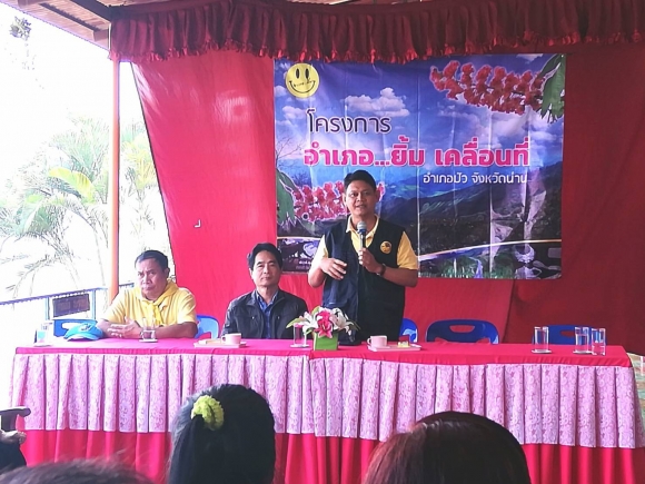 วันที่ 18 กุมภาพันธ์ 2563 ณ โรงเรียนบ้านผาเวียง หมู่ 3 ตำบลภูคา อำเภอปัว จังหวัดน่าน นายชนาธิป เสมแย้ม นายอำเภอปัว พร้อมด้วยส่วนราชการในพื้นที่อำเภอปัว จัดโครงการอำเภอยิ้ม..เคลื่อนที่ โดยมีวัตถุประสงค์เพื่อชี้แจงนโยบายของทางราชการ และออกหน่วยให้บริการแก่ประชาชนในพื้นที่แบบเบ็ดเสร็จและเพื่ออำนวยความสะดวกในการติดต่อราชการของประชาชนในพื้นที่ สร้างความสัมพันธ์ที่ดีระหว่างประชาชนและภาคส่วนของราชการ ในการนี้นายธวัช จินะ เกษตรอำเภอปัว พร้อมด้วยเจ้าหน้าที่ในสังกัด ได้ประชาสัมพันธ์และชี้แจงสร้างการรับรู้การหยุดเผาในพื้นที่การเกษตร และให้บริการน้ำหมักชีวภาพ และสารเร่งซุปเปอร์ พด.2 ให้แก่เกษตรกรนำไปใช้ประโยชน์ต่อไป