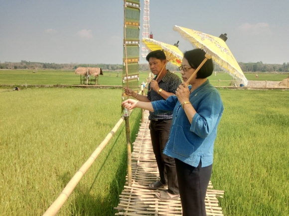 19 ก.พ.63 เวลา 13.00 น. นส.ประทิน มณีรัตน์ กษอ.ภูเพียงและนายไพยนต์ งานมูลเมือง เจ้าพนักงานการเกษตร ชำนาญงาน ผู้รับผิดชอบงานส่งเสริมและพัฒนาการเกษตรประจำตำบลท่าน้าว ออกติดตามและเยี่ยมเยียนเกษตรกรผู้ปลูกข้าวนาปัง ม.3 ต.ท่าวน้าว อ.ภูเพียง จ.น่าน ร่วมกับผู้นำท้องที่และเกษตรกร พบปัญหาการระบาดโรค แมลงศัตรูพืชและเกษตรกรบำรุง ดูแลรักษา ใส่ปุ๋ยต้นข้าวไม่ถูกวิธี จึงเป็นสาเหตุให้ต้นข้าวชะงักการเจริญ มีสีเหลืองแห้งและต้นข้าวมีใบไหม้