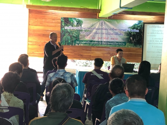 วันที่ 19 กุมภาพันธ์ 2563 เวลา 09.00 น.ศูนย์ส่งเสริมและพัฒนาอาชีพการเกษตรจังหวัดน่านร่วมกับสำนักงานเกษตรอำเภอนาหมื่น จัดฝึกอบรมโครงการส่งเสริมและพัฒนาอาชีพการเกษตร หลักสูตร การจัดการสวนไม้ผลไม้ยืนต้น แก่เกษตรกรผู้ปลูกทุเรียน ตำบลเมืองลี อ.นาหมื่น ณ ห้องประชุมองค์การบริหารส่วนตำบลเมืองลี ในการอบรมครั้งนี้มีเกษตรกรเข้าร่วมอบรมจำนวน 50 ราย