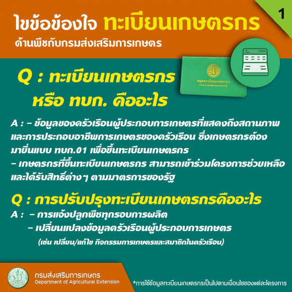 ไขข้อข้องใจ ทะเบียนเกษตรกรด้านพืชกับกรมส่งเสริมการเกษตร