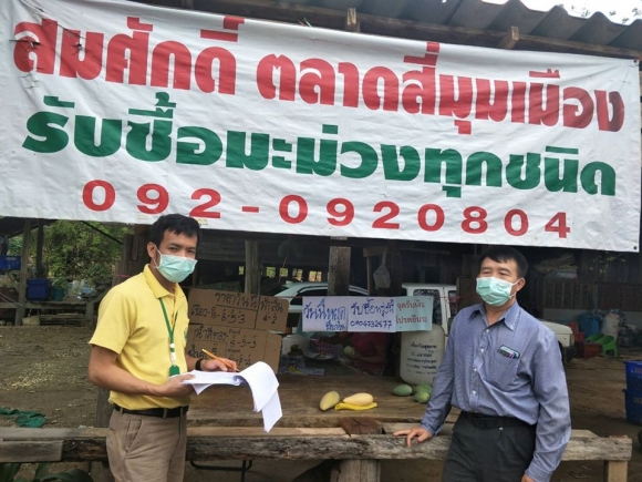 วันที่ 27 เมษายน 2563 เกษตรจังหวัดน่าน มอบหมายให้ นายประดิษฐ์ ธนะขว้าง หัวหน้ากลุ่มส่งเสริมและพัฒนาการผลิต พร้อมด้วยนายประทวน จันทร์ดี นักวิชาการส่งเสริมการเกษตรชำนาญการ ออกติดตาม ประเมินสถานการณ์การผลิต การเก็บเกี่ยว คุณภาพผลผลิต และราคา ของมะม่วง ในพื้นที่ อ.เวียงสา ทั้งนี้มีผู้ประกอบการรับซื้อผลผลิต 5 ราย โดยรับซื้อมะม่วงเขียวเสวย,อกร่อง,มะม่วงแก้ว,น้ำดอกไม้เบอร์ 4 ราคารับซื้อตามเกรดคุณภาพ ดังนี้ เขียวเสวย = 13/8/4/2 บาท อกร่อง = 5/2 บาท มะม่วงแก้ว 3/2 บาท ปริมาณผลผลิตที่รับซื้อ ประมาณ 18-27 ตัน/วัน โดยผู้ประกอบการสะท้อนปัญหาด้านคุณภาพผลผลิต และแรงงานคัดเกรดที่มีช่วงเวลาทำงานจำกัดตาม พรบ.ฉุกเฉินฯ