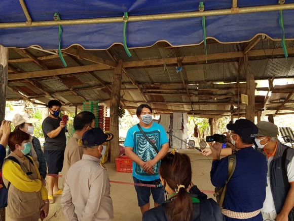 วันที่ 27 เมษายน 2563 นายเศรณี อนิลบล เกษตรจังหวัดน่าน นางสุเกวรินทร์ เหล็กนาพญา พาณิชย์จังหวัดน่าน ร่วมกับนายสุทัศน์ จินตเวชศาสตร์ นายอำเภอท่าวังผา นางอนงค์ ตันติตระการวัฒนา เกษตรอำเภอท่าวังผา หน่วยงานฝ่ายปกครอง และหน่วยงานด้านสาธารณสุขอำเภอท่าวังผา นำสื่อมวลชนติดตามการปฏิบัติตามมาตรการควบคุมการแพร่ระบาดของโรคติดเชื้อไวรัสโคโรนา 2019 ( COVID-19 ) ของจังหวัดน่าน และสถานการณ์การรับซื้อผลผลิตมะม่วงในพื้นที่อำเภอท่าวังผา พบผู้ประกอบการรับซื้อมะม่วงและเกษตรกรชาวสวนมะม่วงในพื้นที่อำเภอท่าวังผาและใกล้เคียงที่นำผลผลิตมะม่วงมาจำหน่ายมีการปฏิบัติตามมาตรการควบคุมการแพร่ระบาดของโรคติดเชื้อไวรัสโคโรนา 2019 ( COVID-19 ) อาทิ การกักกันตัวผู้ประกอบการที่เข้ามารับซื้อผลผลิต การเว้นระยะห่าง การสวมใส่หน้ากากอนามัยตลอดเวลาที่ปฏิบัติงาน ฯลฯ และสถานการณ์การรับซื้อผลผลิตมะม่วงในขณะนี้ผลผลิตมะม่วงที่ผู้ประกอบการรับซื้อคือพันธุ์เขียวเสวยและพันธฺุ์น้ำดอกไม้ โดยมะม่วงพันธุ์เขียวเสวยเกรดสูงสุดราคากิโลกรัมละ 15 บาท มะม่วงพันธุ์น้ำดอกไม้เบอร์ 4 เกรดสูงสุดราคากิโลกรัมละ 10 บาท และมะม่วงพันธุ์น้ำดอกไม้สีทองเกรดสูงสุดราคากิโลกรัมละ 21 บาท.