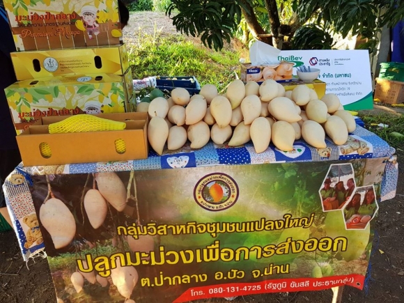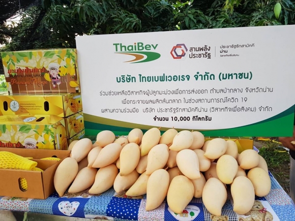 วันที่ 4 พฤษภาคม 2563 นายเศรณี อนิลบล เกษตรจังหวัดน่าน พร้อมเจ้าหน้าที่สำนักงานเกษตรอำเภอปัว หอการค้าจังหวัดน่าน บริษัทประชารัฐรักสามัคคีน่าน ร่วมเป็นสักขีพยานในการรับซื้อมะม่วงน้ำดอกไม้ตกเกรด จำนวน 10 ตัน โดยบริษัทไทยเบฟเวอเรจ จำกัด (มหาชน) กับกลุ่มวิสาหกิจชุมชนแปลงใหญ่ปลูกมะม่วงเพื่อการส่งออกตำบลป่ากลาง อำเภอปัว จังหวัดน่าน ซึ่งปกติมะม่วงน้ำดอกไม้ตกเกรดทางกลุ่มฯจำหน่ายได้ราคากิโลกรัมละ 3-4 บาท แต่ทางบริษัทไทยเบฟเวอเรจ จำกัด (มหาชน) ร่วมช่วยเหลือเกษตรกรชาวสวนมะม่วงที่ได้รับผลกระทบจากสถานการณ์การแพร่ระบาดของโรคติดเชื้อไวรัสโคโรนา 2019 (COVID-19 ) มารับซื้อมะม่วงน้ำดอกไม้ตกเกรดถึงสวนในราคากิโลกรัมละ 10 บาท