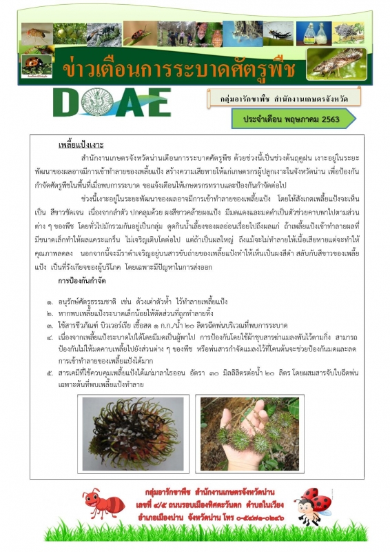 ข่าวเตือนการระบาดเพลี้ยแป้งเงาะ