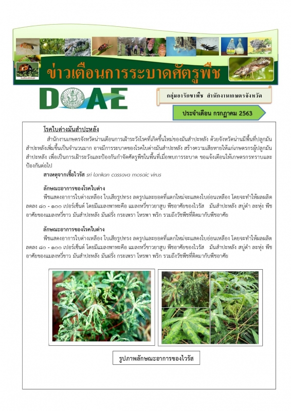 ข่าวเตือนการระบาดใบด่างมันสำปะหลัง เดือนกรกฎาคม