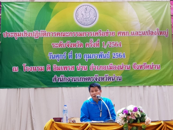 วันที่ 19 กุมภาพันธ์ 2564 นายศักดิ์สิทธิ์ ศรีวิชัย เกษตรจังหวัดน่าน มอบนโยบายและแลกเปลี่ยนแนวทางการดำเนินงานเจ้าหน้าที่สำนักงานเกษตรจังหวัดน่านและสำนักงานเกษตรอำเภอ ทั้ง 15 อำเภอ ณ โรงแรมดิอิมเพรสน่าน อำเภอเมืองน่าน จังหวัดน่าน ในประเด็น