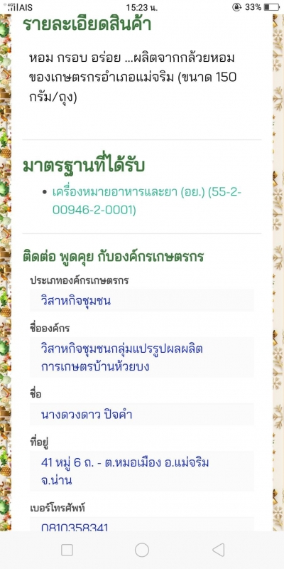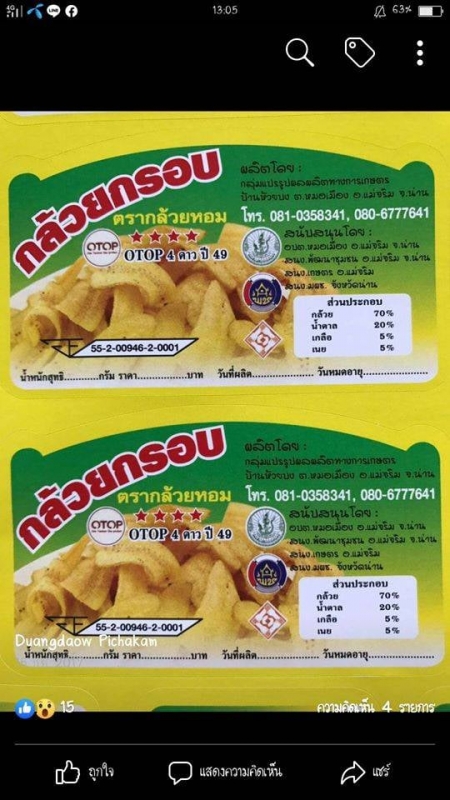 วันที่ 22 กุมภาพันธ์ 2564 นายศักดิ์สิทธิ์ ศรีวิชัย เกษตรจังหวัดน่าน มอบหมายให้นางสาวณัฐฐิกา เสวกะ นักวิชาการส่งเสริมการเกษตรปฏิบัติการ และนายดำรงค์ศักดิ์ สุธรรมจา นักวิชาการส่งเสริมการเกษตรปฏิบัติการ กลุ่มส่งเสริมและพัฒนาเกษตรกร ลงพื้นที่ติดตามการดำเนินงานตามโครงการตลาดเกษตรกรออนไลน์ ณ วิสาหกิจชุมชนกลุ่มแปรรูปผลผลิตทางการเกษตรห้วยบง ตำบลหมอเมือง อำเภอแม่จริม ที่มีผลิตภัณฑ์กล้วยกรอบแม่จริมประชาสัมพันธ์ลงใน www.ตลาดเกษตรกรออนไลน์.com ของกรมส่งเสริมการเกษตร โดยมีวัตถุดิบเป็นกล้วยไข่น้ำ กำลังการผลิตเดือนละประมาณ700 กิโลกรัม จากนั้นลงพื้นที่กลุ่มแปลงใหญ่ผักปลอดภัยแม่จริม เพื่อเก็บข้อมูลเชื่อมโยงการตลาด ณ ตำบลแม่จริม อำเภอแม่จริม จังหวัดน่าน