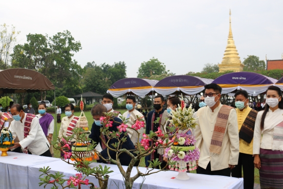 น่าน จัดงานวันพระเจ้าน่าน ประจำปี 2564 นายศักดิ์สิทธิ์ ศรีวิชัย เกษตรจังหวัดน่าน พร้อมคณะเจ้าหน้าที่สำนักงานเกษตรจังหวัดน่าน ร่วมพิธีบวงสรวงสิ่งศักดิ์สิทธิ์ พิธีทำบุญตักบาตร และพิธีถวายต้นกุ่มดอกไม้สดถวายสักการะ(พานพุ่มดอกไม้สด)