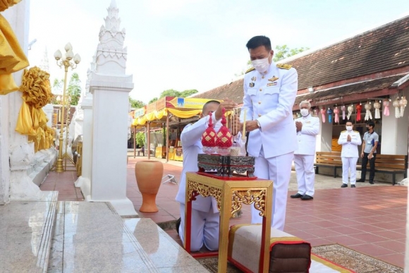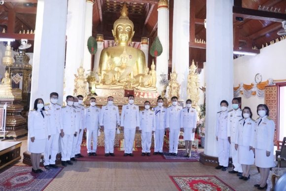 นายนิพันธ์ บุญหลวง ผู้ว่าราชการจังหวัดน่าน พร้อมหัวหน้าส่วนราชการในจังหวัดน่าน ร่วมพิธีเจริญพระพุทธมนต์สมโภชพระธาตุแช่แห้ง เฉลิมพระเกียรติสมเด็จพระนางเจ้าสุทิดา พัชรสุธาพิมลลักษณ พระบรมราชินี เนื่องในโอกาสวันเฉลิมพระชนมพรรษา 43 พรรษา 3 มิถุนายน 2564
