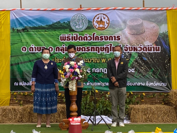 วันที่ 15 กรกฎาคม 2564 นายศักดิ์สิทธิ์ ศรีวิชัย เกษตรจังหวัดน่าน พร้อมด้วย นายเรวัต พรมสาส์น นักวิชาการส่งเสริมการเกษตรชำนาญการ รักษาราชการแทนเกษตรอำเภอเชียงกลาง เจ้าหน้าที่สำนักงานเกษตรอำเภอเชียงกลาง เจ้าหน้าที่ในหน่วยงานสังกัดกระทรวงเกษตรและสหกรณ์ จังหวัดน่าน ร่วมจัดพิธีเปิดตัวโครงการ 1 ตำบล 1 กลุ่มเกษตรทฤษฎีใหม่ จังหวัดน่าน ประจำปีงบประมาณ พ.ศ.2564 ณ แปลงเรียนรู้ นายชาตรี ทำงาม หมู่ที่ 3 ตำบลพญาแก้ว อำเภอเชียงกลาง จังหวัดน่าน โดยนายวิบูรณ์ แววบัณฑิต รองผู้ว่าราชการจังหวัดน่าน เป็นประธานในพิธี และนายภูผา อภิรัฐวงศ์ นายอำเภอเชียงกลาง กล่าวต้อนรับ ตลอดจนส่วนราชการท้องที่/ท้องถิ่นในอำเภอเชียงกลาง ร่วมให้การต้อนรับ