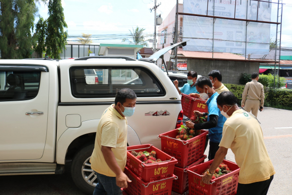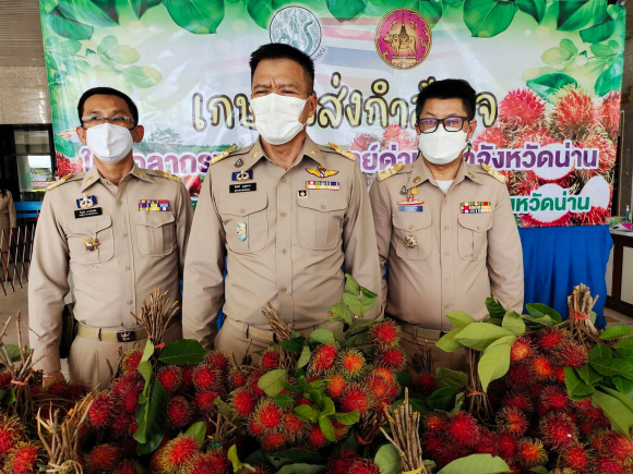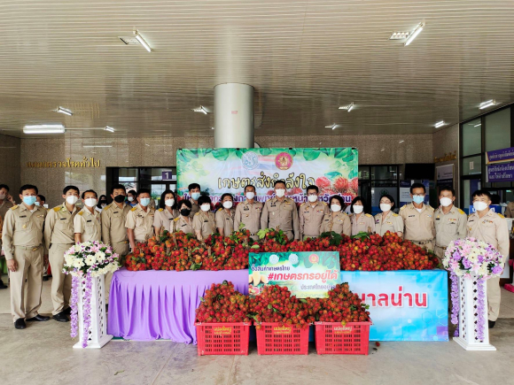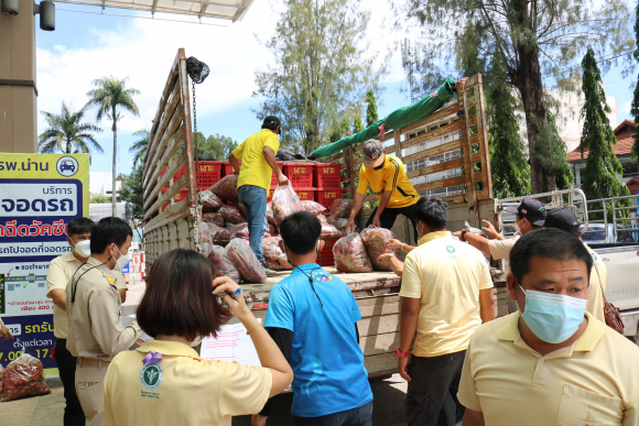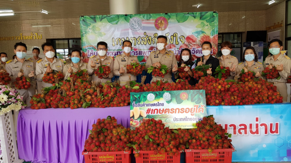 วันที่ 23 สิงหาคม 2564 ที่หน้าอาคารสิริเวชรักษ์ โรงพยาบาลน่าน นายนิพันธ์ บุญหลวง ผู้ว่าราชการจังหวัดน่าน พร้อมนายวิบูรณ์ แววบัณฑิต รองผู้ว่าราชการจังหวัดน่าน นำหัวหน้าส่วนราชการในสังกัดกระทรวงเกษตรและสหกรณ์จังหวัดน่าน มีนายศักดิ์สิทธิ์ ศรีวิชัย เกษตรจังหวัดน่าน พร้อมเกษตรอำเภอทุกอำเภอ หัวหน้าส่วนราชการต่าง ๆ ในสังกัด กระทรวงเกษตรและสหกรณ์จังหวัดน่าน ร่วมส่งมอบผลผลิตเงาะกว่า 3 ตัน จากแปลงใหญ่เงาะอำเภอทุ่งช้าง จังหวัดน่าน มอบเป็นกำลังใจในการปฏิบัติหน้าที่ของบุคลากรทางการแพทย์ด่านหน้า ให้แก่โรงพยาบาลน่าน ซึ่งจะได้จัดสรรผลผลิตเงาะที่ได้รับมอบในครั้งนี้ นำไปแจกจ่ายให้แก่โรงพยาบาล และด่านคัดกรองต่าง ๆ จำนวนรวม 24 หน่วย ในพื้นที่จังหวัดน่าน เพื่อส่งมอบความห่วงใย สร้างขวัญและกำลังใจในการปฏิบัติหน้าที่ต่อสู้กับปัญหาของการแพร่ระบาดโรคโควิด-19 โดยมีแพทย์หญิงอัจฉรา ละอองนวลพานิช ผู้อำนวยการโรงพยาบาลน่าน และนางกานดา ยุบล รองนายแพทย์สาธารณสุขจังหวัดน่าน และบุคคลากรโรงพยาบาลน่าน เป็นผู้รับมอบ