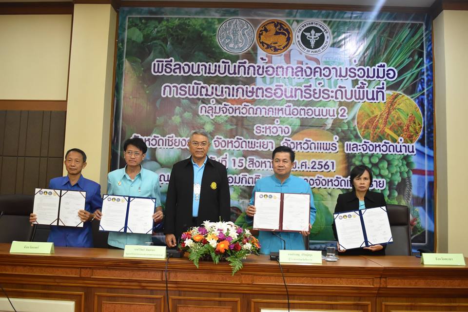 วันที่ 15 สิงหาคม 2561 นายประเสริฐ ดอยลอม เกษตรจังหวัดน่าน ร่วมพิธีลงนามบันทึกข้อตกลงความร่วมมือการพัฒนาเกษตรอินทรีย์กลุ่มจังหวัดภาคเหนือตอนบน 2 (เชียงราย พะเยา แพร่ น่าน) มี นายวิวัฒน์ ศัลยกำธร รัฐมนตรีช่วยว่าการกระทรวงเกษตรและสหกรณ์ เป็นประธานฯ โดยกระทรวงเกษตรฯ มีแผนการดำเนินงานขับเคลื่อนการพัฒนาประเทศตามยุทธศาสตร์การพัฒนาเกษตรอินทรีย์แห่งชาติ พ.ศ.2560-2564 เป้าหมาย 300,000 ไร่ โดยมุ่งเป้าขยายพื้นที่เกษตรอินทรีย์ภาคเหนือ 56,000 ไร่ ในปี 2564 ณ ศาลากลางจังหวัดเชียงราย