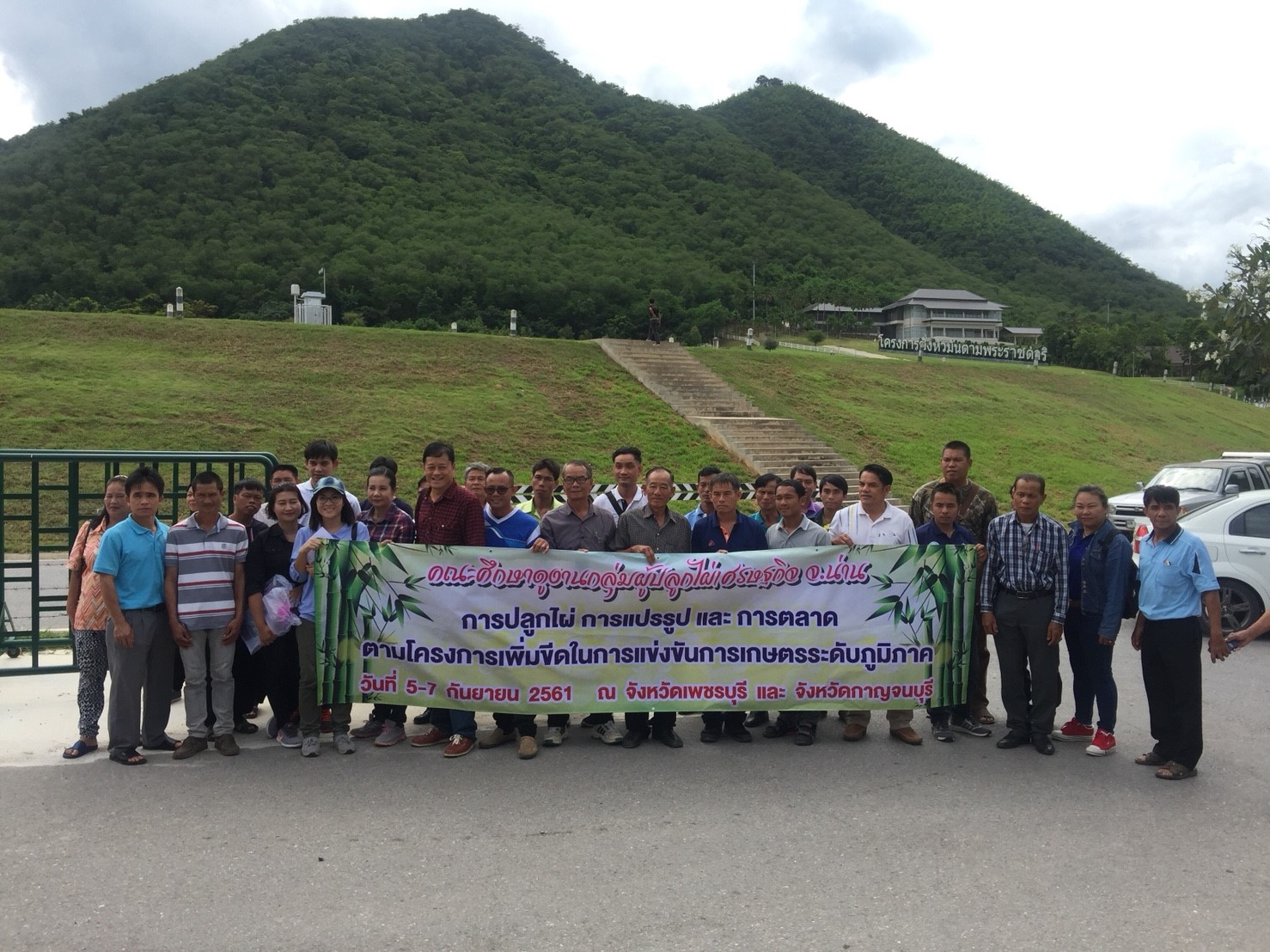 วันที่่ 5- 7 กันยายน 2561 นายประเสริฐ ดอยลอม เกษตรจังหวัดน่าน มอบหมายให้นายพีรพงษ์ บุญวิริยะศักดิ์ หัวหน้ากลุ่มส่งเสริมและพัฒนาการผลิต นำคณะตัวแทนกลุ่มเกษตรกรผู้ปลูกไผ่เศรษฐกิจ และเจ้าหน้าที่ผู้รับผิดชอบ จำนวน 70 คน ศึกษาดูงานการปลูก การแปรรูป การตลาดไผ่ ศึกษาแนวทางการบริหารจัดการกลุ่มไผ่แบบครบวงจร ตลอดจนศึกษาแนวทางการพัฒนาด้านการเกษตรสำหรับเกษตรกร ณ โครงการตามพระราชดำริ (โครงการชั่งหัวมัน) จังหวัดเพชรบุรี และพื้นที่จังหวัดกาญจนบุรี