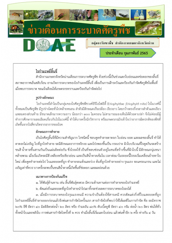 เตือนการระบาด ไรกำมะหยี่ลิ้นจี่
