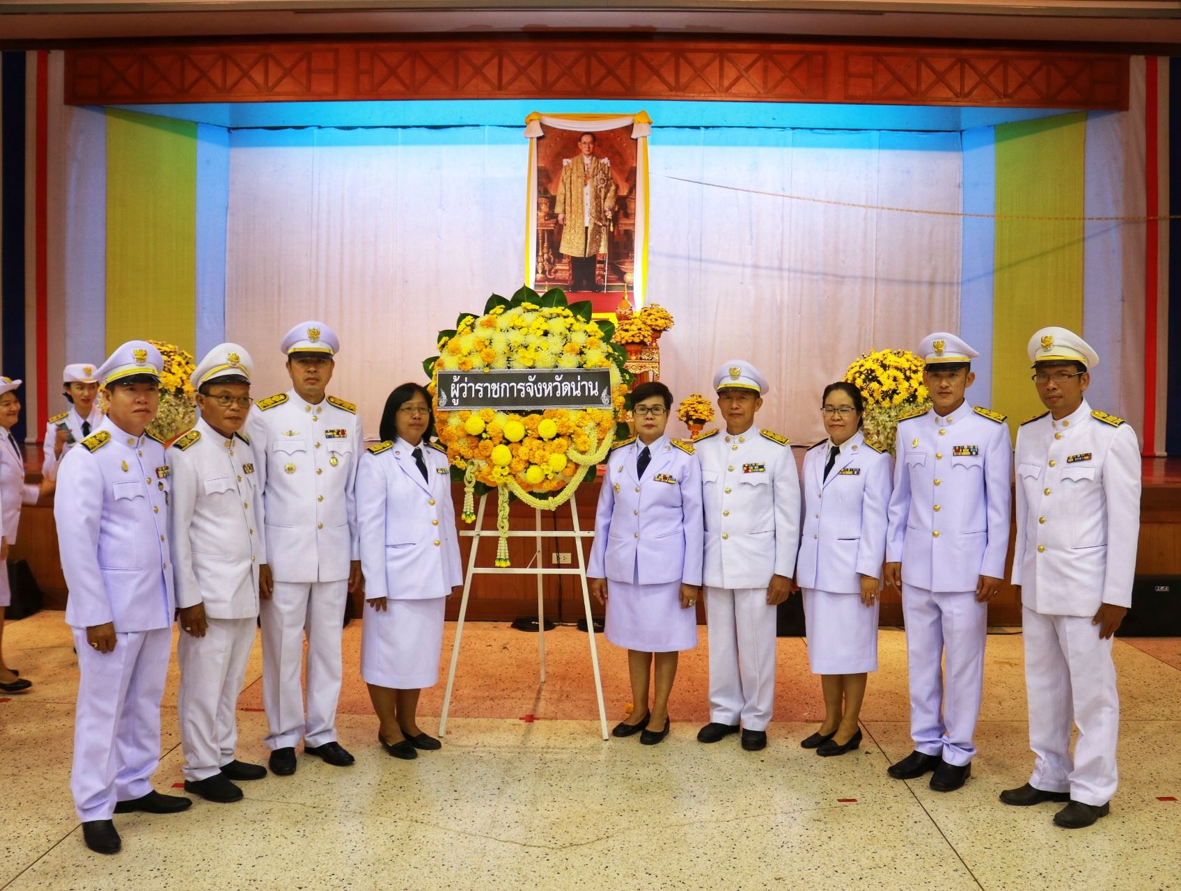 ในเวลา 8.30 น. ได้มีพิธีวางพวงมาลาและถวายบังคม โดยประธานในพิธี วางพวงมาลาเบื้องหน้าพระบรมฉายาลักษณ์พระบาทสมเด็จพระปรมินทรมหาภูมิพลอดุลยเดช บรมนาถบพิตร จากนั้นส่วนราชการ หน่วยงานรัฐวิสาหกิจ องค์กรเอกชน และภาคประชาชน วางพวงมาลาตามลำดับ ณ หอประชุมศูนย์ราชการจังหวัดน่าน