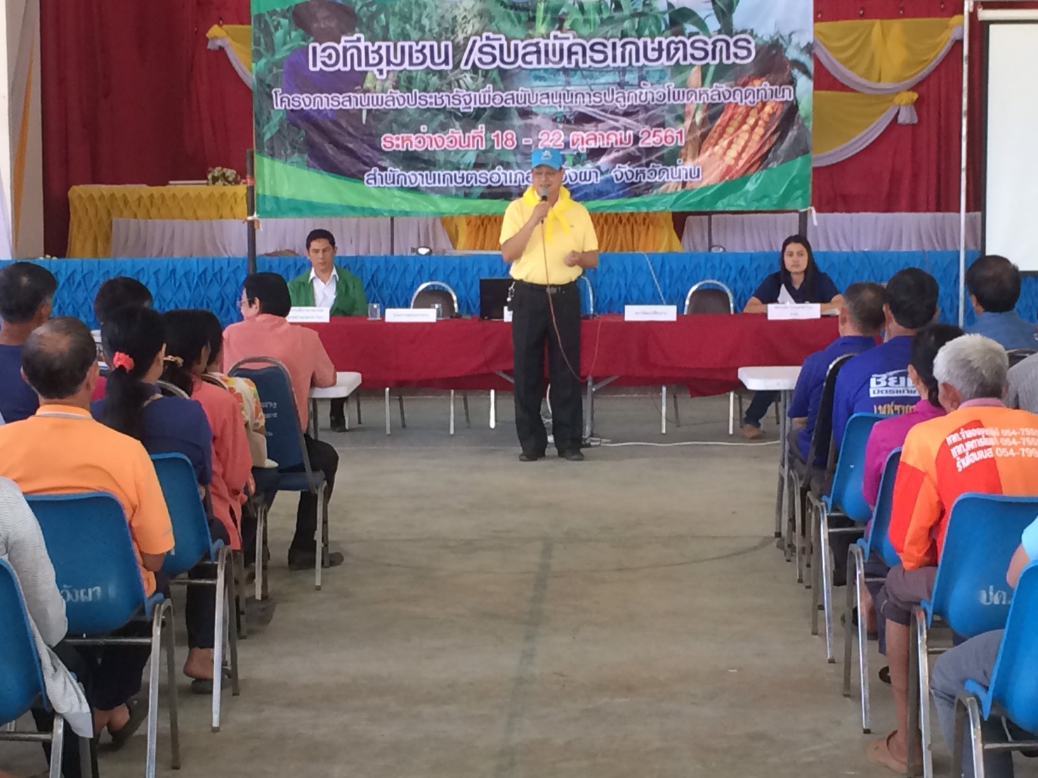 ให้ข้อมูล ประชาสัมพันธ์ /รับสมัครเกษตรกรเข้าร่วมโครงการฯ โดยมีเกษตรกรที่อยู่ในเขตพื้นที่ที่มีศักยภาพเหมาะสมในการปลูกข้าวโพดหลังนา ตำบลริม ตำบลศรีภูมิ ตำบลแสนทอง ตำบลยมและตำบลท่าวังผา เข้าร่วมรับฟังการชี้แจงโครงการฯ จำนวน 484 ราย ณ หอประชุมที่ว่าการอำเภอท่าวังผา จังหวัดน่าน