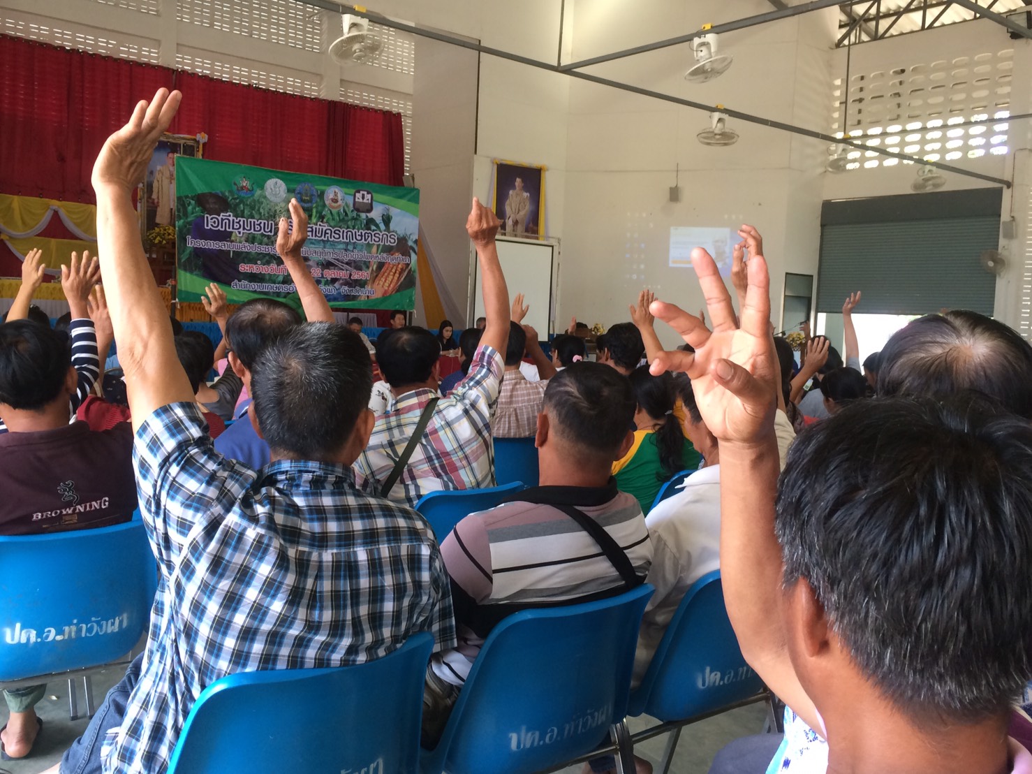 วันที่ 18 ตุลาคม 2561 นายภูเบศ พุฒิรัตนาพร นายอำเภอท่าวังผาเป็นประธานในการดำเนินการจัดเวทีชุมชนชี้แจง ทำความเข้าใจ/รับสมัครเกษตรกรเข้าร่วมโครงการสานพลังประชารัฐเพื่อสนับสนุนการปลูกข้าวโพดหลังฤดูทำนา โดยมีสำนักงานเกษตรจังหวัดน่านและสำนักงานเกษตรอำเภอท่าวังผา ร่วมกับทีม 5 ทหารเสือ ได้แก่ เกษตรอำเภอท่าวังผา ,ตัวแทนจากโครงการชลประทานน่าน ,