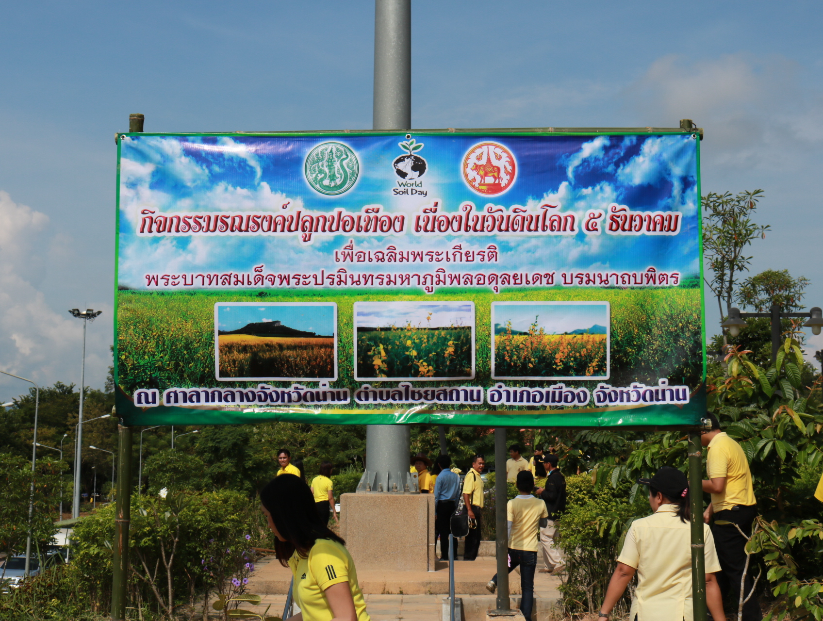 นายประเสร็จ ดอยลอม เกษตรจังหวัดน่าน พร้อมเจ้าหน้าที่สำนักงานเกษตรจังหวัดน่าน ร่วมพิธีเปิดกิจกรรมรณรงค์ปลูกปอเทือง เนื่องในวันดินโลก เพื่อเฉลิมพระเกียรติพระบาทสมเด็จพระปรมินทรมหาภูมิพลอดุลยเดช บรมนาถบพิตร โดยบูรณาการทุกส่วนราชการ ภาคเอกชน สถาบันการศึกษา ชุมชน เกษตรกร และสื่อมวลชน เพื่อสร้างการรับรู้เกี่ยวกับวันดินโลก และมีการร่วมหว่านปอเทือง เพื่อให้ออกดอกเหลืองสะพรั่งในวันที่ 5 ธันวาคม 2561