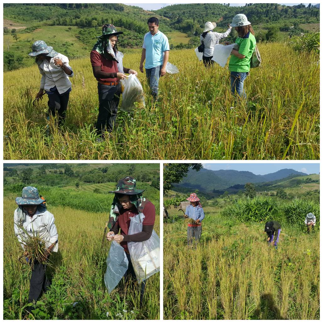 2.สุ่มเก็บข้าวในแปลงเพื่อวัดปริมาณผลผลิต หลังจากใช้เมตาไรเซียมกำจัดหนอนด้วงปีกแข็ง และใส่ปุ๋ยกระตุ้นการแตกกอ