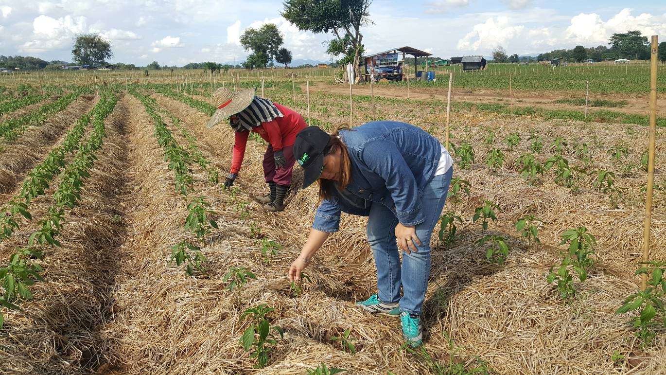 และในวันเดียวกัน นางสาวกชกร แสนธิวัง นักวิชาการส่งเสริมการเกษตรชำนาญการ เยี่ยมเยียนเกษตรกรผู้ปลูกพริกบ้านปงพัฒนา ตำบลตาลชุม อำเภอท่าวังผา ซึ่งเป็นกลุ่มเกษตรกรที่ปลูกพริกเพื่อส่งโรงงาน โดยเน้นให้เกษตรกรใช้สารชีวภัณฑ์เพื่อทดแทนสารเคมี เพื่อลดต้นทุนการผลิต แนะนำการใช้สารชีวภัณฑ์ที่ถูกให้ถูกวิธี เกิดประสิทธิภาพการผลิต และตรวจโรคแมลงในแปลงพริกของเกษตร แนะนำให้เกษตรกรขยันตรวจสอบแปลงเพื่อการป้องกันโรคแมลงได้อย่างทันทีเมื่อเกิดการระบาด ในแปลงพริก