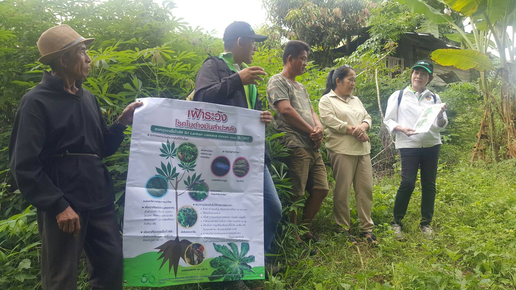 รักษาการในตำแหน่งหัวหน้ากลุ่มอารักขาพืชและคณะ ลงพื้นที่ร่วมกับเจ้าหน้าที่สำนักงานเกษตรอำเภอเมืองน่าน สำรวจและเฝ้าระวังการระบาดของโรคใบด่างมันสำปะหลัง ณ บ้านห้วยปุก หมู่9 ตำบลสะเนียน อำเภอเมือง จังหวัดน่านรวมจำนวน 3 แปลง ผลการสำรวจเบื้องต้น ปรากฎว่า ไม่พบการระบาดของโรคใบด่างมันสำปะหลัง