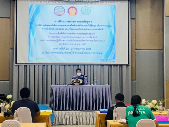 วันที่ 25 พฤษภาคม 2565 นายศักดิ์สิทธิ์ ศรีวิชัย เกษตรจังหวัดน่าน เป็นประธานในพิธีเปิดการฝึกอบรมเกษตรกรในการใช้งานอินเตอร์เน็ต การตลาดออนไลน์ การค้นหาและใช้ข้อมูล เพื่อการวางแผนการผลิตสินค้าปลอดภัยและเชื่อมโยงเครือข่ายผ่านระบบออนไลน์ โครงการเพิ่มขีดในการแข่งขันการเกษตรระดับภูมิภาค ปี 2565 โครงการตามแผนปฏิบัติราชการประจำปีงบประมาณ พ.ศ. 2565 ของกลุ่มจังหวัดภาคเหนือตอนบน 2 มีเกษตรกรเป้าหมาย จำนวน 50 ราย เข้าร่วมการฝึกอบรม โดยกำหนดการฝึกอบรมในระหว่างวันที่ 25 - 27 พฤษภาคม 2565 ณ โรงแรมน้ำทองน่าน ตำบลดู่ใต้ อำเภอเมืองน่าน จังหวัดน่าน