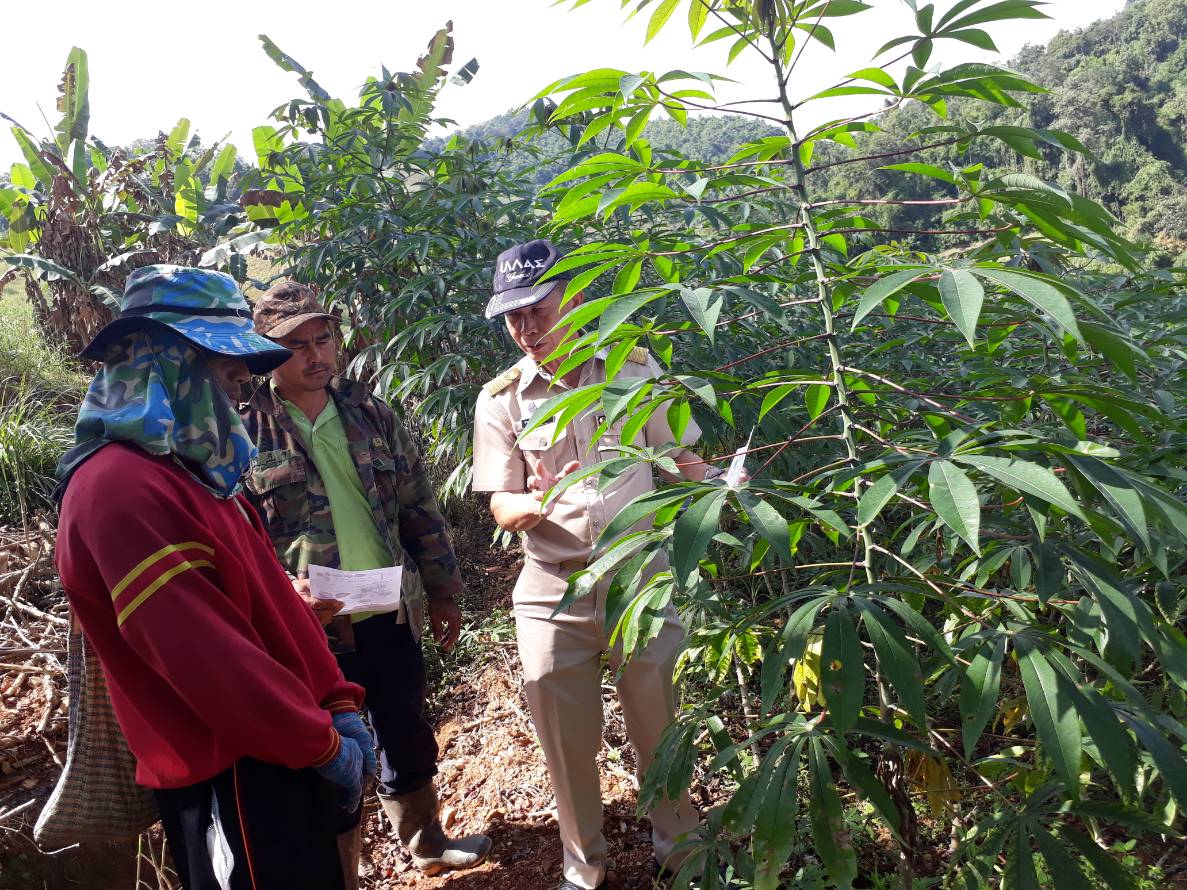 วันที่ 29 ตุลาคม 2561 สำนักงานเกษตรอำเภอเฉลิมพระเกียรติโดย นายสุขพสันต์ พรหมลังกา เกษตรอำเภอเฉลิมพระเกียรติ และนายสุขสันต์ วงค์กุนะ นักวิชาการส่งเสริมการเกษตรปฏิบัติการ ลงพื้นที่ออกติดตามและสำรวจถ่ายทอดความรู้ โรคใบด่างมันสำปะหลัง ณ พื้นที่บ้านใหม่ไชยธงรัตน์ ม.6 ตำบลห้วยโก๋น จังหวัดน่าน จำนวน 3 แปลงไม่พบการระบาดของโรคใบด่างมันสำปะหลัง
