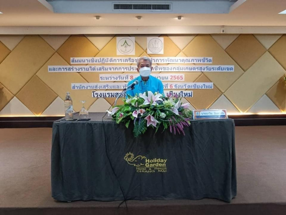 วันที่ 8 - 10 มิถุนายน 2565 นายศักดิ์สิทธิ์ ศรีวิชัย เกษตรจังหวัดน่าน มอบหมายให้นางสาวพัชราภรณ์ บุญมา นักวิชาการส่งเสริมการเกษตรปฏิบัติการ กลุ่มส่งเสริมและพัฒนาเกษตรกร สำนักงานเกษตรจังหวัดน่าน เข้าร่วมการสัมมนาเชิงปฏิบัติการเครือข่ายผู้นำการพัฒนาคุณภาพชีวิตและการสร้างรายได้เสริมจากการประกอบอาชีพของกลุ่มเกษตรสูงวัยระดับเขต ประจำปี 2565 เพื่อส่งเสริมและพัฒนาทักษะเคหกิจเกษตรในครัวเรือนสูงวัย เพื่อพัฒนาคุณภาพชีวิตและเตรียมความพร้อมในการเข้าสู่สังคมสูงวัย เพิ่มขีดความสามารถของเกษตรกรสูงวัยในการประกอบอาชีพเพื่อสร้างรายได้มีคุณภาพชีวิตที่ดีขึ้น การสัมมนาในครั้งนี้มีทั้งการให้ความรู้, การแลกเปลี่ยนเรียนรู้, การจัดทำแผนการพัฒนาฯ และการศึกษาดูงานฯ โดยมีนายนาวิน อินทจักร ผู้อำนวยการสำนักงานส่งเสริมและพัฒนาการเกษตรที่ 6 จังหวัดเชียงใหม่ เป็นประธานในการเปิดการสัมมนา ณ โรงแรมฮอลิเดย์ การ์เด้น อ.เมืองเชียงใหม่ จ.เชียงใหม่