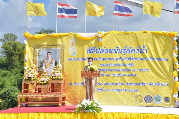 วันที่ 25 กรกฎาคม 2565 นายวิบูรณ์ แววบัณฑิต ผู้ว่าราชการจังหวัดน่าน เป็นประธานในพิธีปล่อยพันธุ์สัตว์น้ำ เนื่องในวันเฉลิมพระชนมพรรษา พระบาทสมเด็จพระปรเมนทรรามาธิบดีศรีสินทรมหาวชิราลงกรณ พระวชิรเกล้าเจ้าอยู่หัว มี นายศักดิ์สิทธิ์ ศรีวิชัย เกษตรจังหวัดน่าน หัวหน้าส่วนราชการ ข้าราชการ ทหาร ตำรวจ และประชาชน เข้าร่วมพิธีดังกล่าว เพื่อเป็นการถวายความจงรักภักดี และถวายเป็นพระราชกุศล แด่พระบาทสมเด็จพระปรเมนทรรามาธิบดี ศรีสินทรมหาวชิราลงกรณ พระวชิรเกล้าเจ้าอยู่หัว ณ อ่างน้ำแหง หมู่ที่ 9 ตำบลนาน้อย อำเภอนาน้อย จังหวัดน่าน