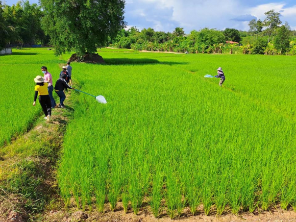 วันที่ 26 กรกฎาคม 2565 นายศักดิ์สิทธิ์ ศรีวิชัย เกษตรจังหวัดน่าน มอบหมายให้ นายอาณัติ ต๊ะวิไชย และนายสุนทร วันหมื่น นักวิชาการส่งเสริมการเกษตรชำนาญการ กลุ่มอารักขาพืช สำนักงานเกษตรจังหวัดน่าน ร่วมกับเจ้าหน้าที่สำนักงานเกษตรอำเภอเวียงสา ติดตามให้คำแนะนำการจัดการศัตรูข้าวให้แก่เกษตรกรนาแปลงใหญ่ตำบลนาเหลือง นาแปลงใหญ่ตำบลจอมจันทร์ อำเภอเวียงสา จังหวัดน่าน