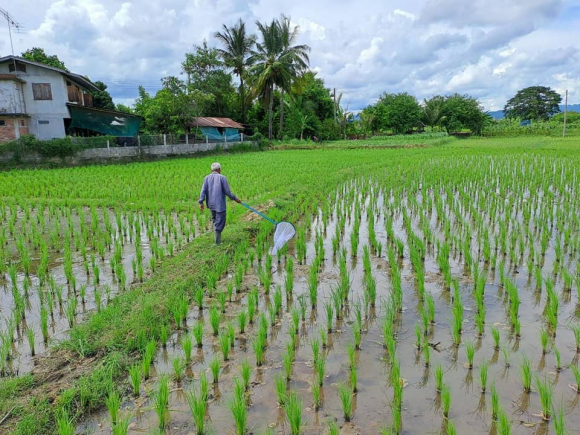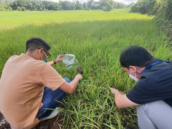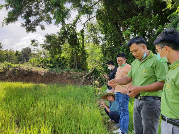 วันที่ 4 สิงหาคม 2565 นายศักดิ์สิทธิ์ ศรีวิชัย เกษตรจังหวัดน่าน มอบหมายให้ นายอาณัติ ต๊ะวิไชย และนายสุนทร วันหมื่น นักวิชาการส่งเสริมการเกษตรชำนาญการ และนางสาวบุณยวีร์ ชาวแพะ นักวิชาการส่งเสริมการเกษตรปฏิบัติการ กลุ่มอารักขาพืช สำนักงานเกษตรจังหวัดน่าน ร่วมกับเจ้าหน้าที่สำนักงานเกษตรอำเภอนาน้อย ลงพื้นที่สำรวจศัตรูพืชในนาข้าวของสมาชิกแปลงใหญ่ข้าวตำบลนาน้อย ตามโครงการระบบส่งเสริมเกษตรแบบแปลงใหญ่ ณ อำเภอนาน้อย จังหวัดน่าน มีจำนวน 2 แปลง 1.สำรวจการระบาดของศัตรูพืชในแปลงนาโดยใช้สวิงโฉบ จำนวน 10 จุดแล้วนำใส่ถุงร้อนเพื่อสังเกตศัตรูธรรมชาติและศัตรูพืช พบว่ามีศัตรูธรรมชาติ ได้แก่ แมลงปอ ด้วงเต่า จำนวน 40-50 ตัว ศัตรูพืชประกอบด้วยเพลี้ยจักจั่น เพลี้ยกระโดดสีนำ้ตาล จำนวน 10-15 ตัว ซึ่งสามารถควบคุมกันภายในแปลงนาได้ และแนะนำให้เกษตรกรเฝ้าระวังโดยการสำรวจในแปลงนาทุกสัปดาห์ 2.แปลงข้าวที่มีลักษณะเป็นใบสีส้มสลับเขียว ได้สอบถามเกษตรกรพบว่าใช้สารเคมีคุมหญ้าและดูจากลักษณะอาการไม่ใช่อาการที่เกิดจากโรคข้าว เนื่องจากเกิดที่ปลายใบและแปลงข้างเคียงไม่มีลักษณะดังกล่าวจึงวินิจฉัยว่าเกิดจากการใช้สารเคมี จึงแนะนำให้เกษตรกรสังเกตอาการที่เกิดขึ้นและเฝ้าระวังสำรวจแปลงอย่างสม่ำเสมอ