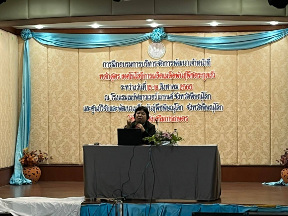 วันที่ 15-18 สิงหาคม 2565 นายศักดิ์สิทธิ์ ศรีวิชัย เกษตรจังหวัดน่าน มอบหมายให้ นายสุทธิพงษ์ พรมมา เจ้าพนักงานการเกษตร กลุ่มส่งเสริมและพัฒนาการผลิต สำนักงานเกษตรจังหวัดน่าน เข้าร่วมฝึกอบรมการบริหารจัดการเจ้าหน้าที่ หลักสูตร เทคโนโลยีการผลิตเมล็ดพันธุ์พืชตระกูลถั่ว ณ โรงแรมเมย์ฟลาว์เวอร์ แกรนด์ จังหวัดพิษณุโลก และศูนย์วิจัยและพัฒนาเมล็ดพันธุ์พืชพิษณุโลก จังหวัดพิษณุโลก