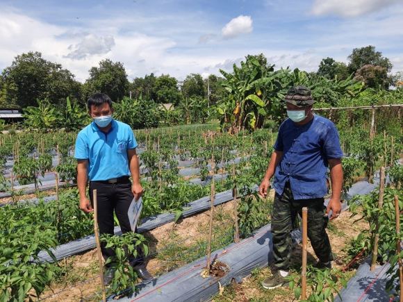 วันที่ 24 สิงหาคม 2565 นายศักดิ์สิทธิ์ ศรีวิชัย เกษตรจังหวัดน่าน มอบหมายให้ นายสุนทร วันหมื่น นักวิชาการส่งเสริมการเกษตรชำนาญการ และนางสาวบุณยวีร์ ชาวแพะ นักวิชาการส่งเสริมการเกษตรปฏิบัติการ กลุ่มอารักขาพืช สำนักงานเกษตรจังหวัดน่าน ติดตามให้คำแนะนำ การควบคุมศัตรูพืชในแปลงพริกพันธุ์ซีอาน 113 และพันธุ์อัมพวาโกล์ จำนวน 2,000 ต้น ซึ่งมีแผนการส่งผลผลิตไปยังวังสระปทุม จากการสำรวจแปลงปลูกพริกพบต้นที่แสดงโรคเหี่ยว จำนวน 1 ต้น ทั้งนี้ได้ให้คำแนะนำในการถอนทำลายต้นพริกที่เป็นโรคไปทำลาย และหมั่นสำรวจแปลงอย่างสม่ำเสมอ ณ โครงการทหารพันธุ์ดี ฐานแสงเพ็ญ ตำบลฝายแก้ว อำเภอภูเพียง จังหวัดน่าน