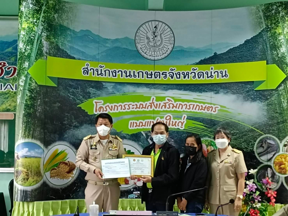 วันที่ 29 สิงหาคม 2565 นายศักดิ์สิทธิ์ ศรีวิชัย เกษตรจังหวัดน่าน เป็นประธานการประชุมเกษตรอำเภอประจำเดือนสิงหาคม 2565 ครั้งที่ 8/2565 ณ ห้องประชุมสำนักงานเกษตรจังหวัดน่าน อำเภอเมืองน่าน จังหวัดน่าน มีหัวหน้ากลุ่ม/ฝ่าย สำนักงานเกษตรจังหวัดน่าน และเกษตรอำเภอทุกอำเภอเข้าร่วมประชุม เพื่อติดตามการดำเนินงานต่าง ๆ ในห้วงที่ผ่านมา และหารือข้อราชการตลอดจนแผนการปฏิบัติงานในห้วงต่อไป โดยก่อนวาระประชุมเกษตรจังหวัดน่านได้มอบโล่รางวัล และเกียรติบัตรการประกวดวิสาหกิจชุมชนดีเด่นระดับจังหวัด ประจำปี 2565 และมอบเกียรติบัตรการประกวดแปลงใหญ่ระดับจังหวัด ประจำปี 2565.jpg)